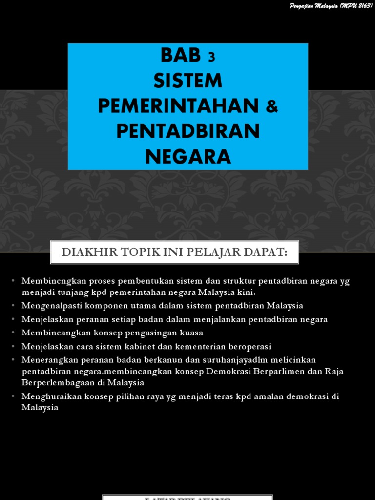 Latar Belakang Pemrintahan dan Pentadbiran Negara. Up to 3 cash back SISTEM. SISTEM PEMERINTAHAN DAN PENTADBIRAN NEGARA MALAYSIA.